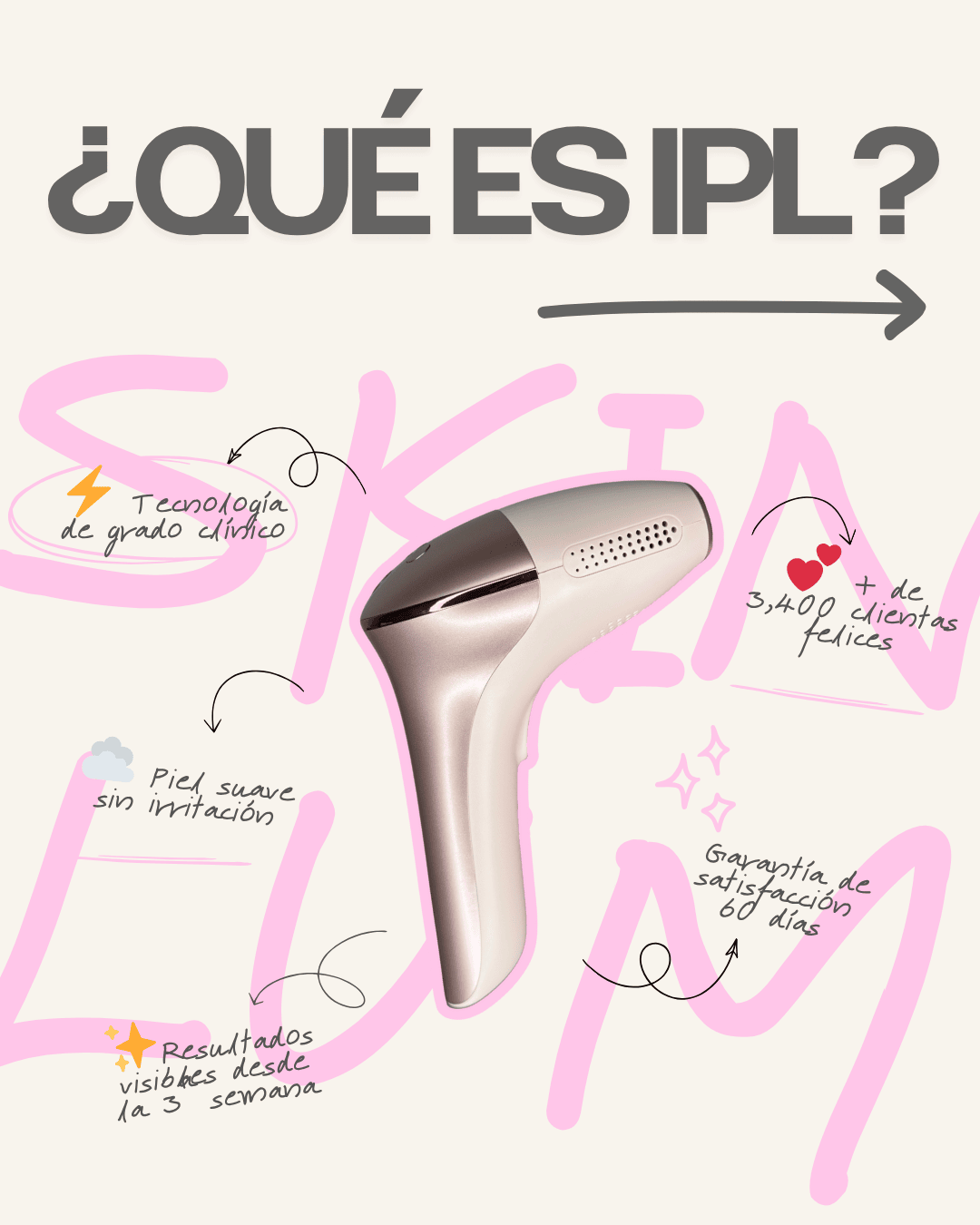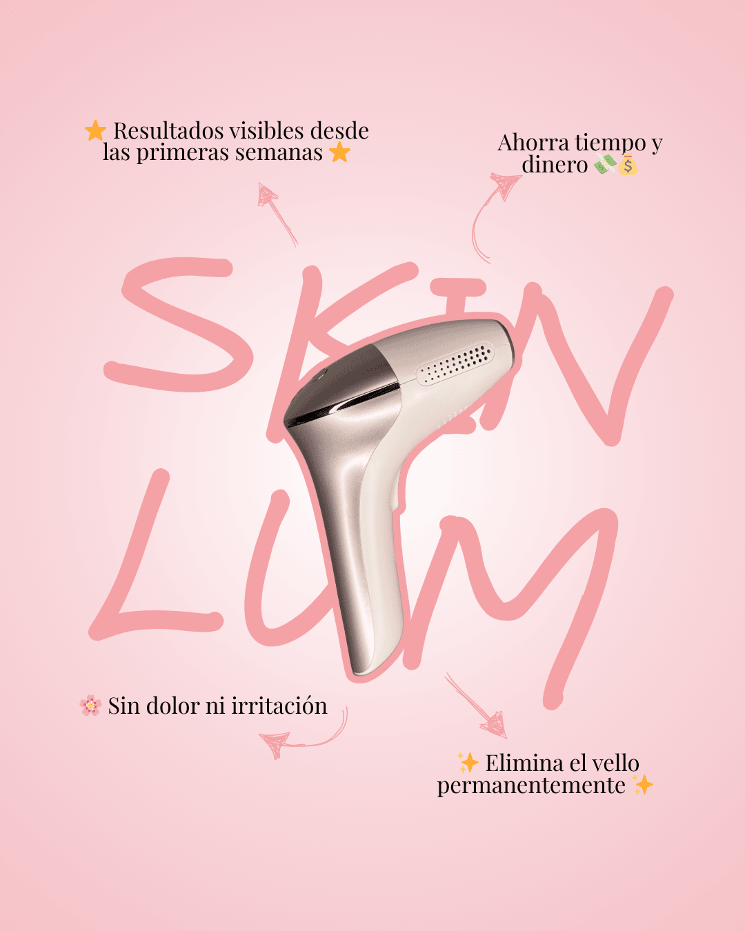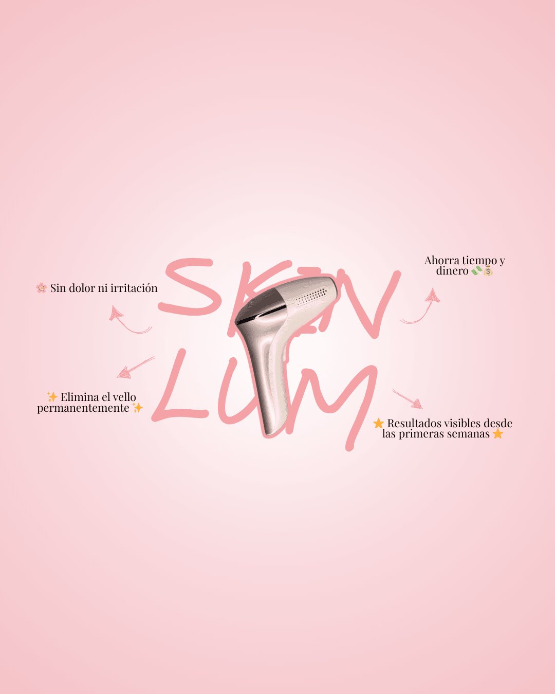 SKINLUM es una depiladora de luz pulsada intensa (IPL) diseñada para eliminar el vello desde la raíz de forma gradual y segura, sin dolor y desde casa.
